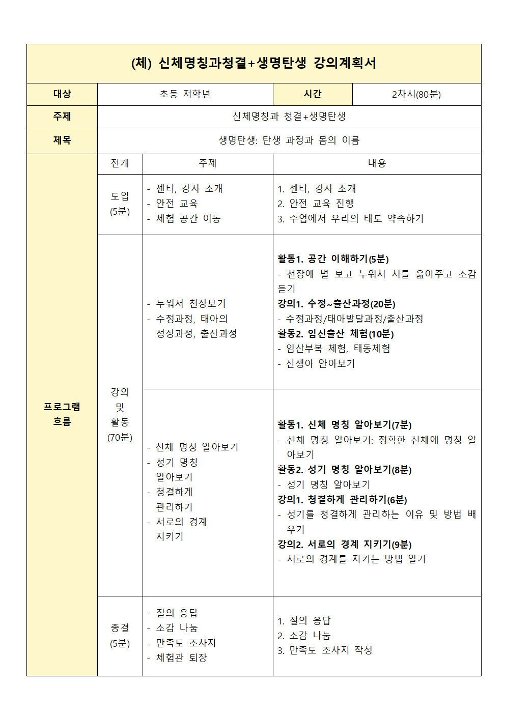 설명 : 수정부터 개월별 태아의 성장과 탄생, 다양한 가족의 모습을 안다. 임산부 체험복, 태동체험, 신생아 아기안기 체험을 할 수 있다. 성기의 명칭과 청결에 대해 알 수 있다.