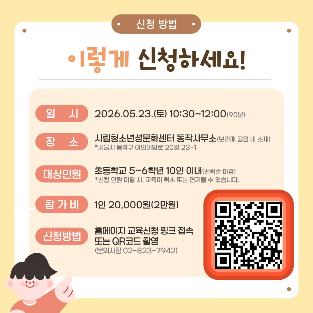 장소: 시립청소년성문화센터 동작사무소 체험관(보라매 공원 내 소재)