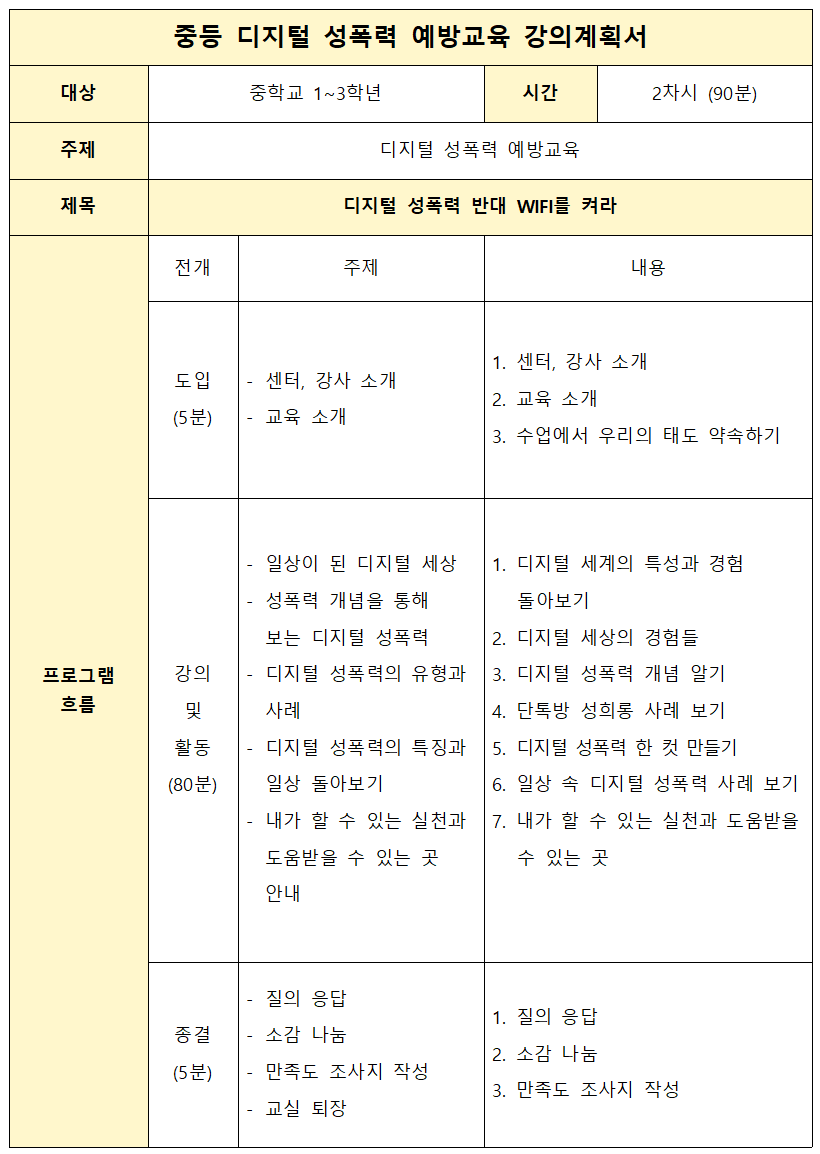 키워드 : 디지털성폭력, 동의, 존중, 예방교육