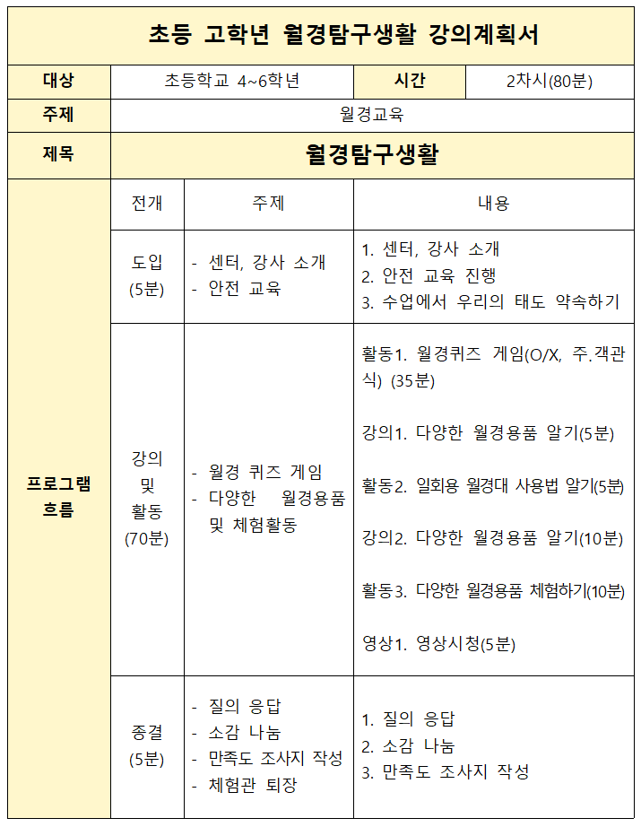설명 : 월경의 원리를 이해하고, 월경에 관련된 다양한 지식과 다양한 월경용품에 대해 알아볼 수 있습니다.